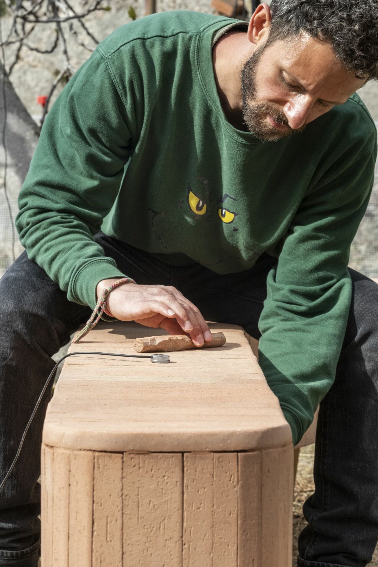 In questo senso, è una tecnologia che va controcorrente: non cerca di ottimizzare i nostri tempi, renderci più produttivi e stressati, ma piuttosto di farci assaporare quello che è già intorno a noi. Il funzionamento della tecnologia combina sensori di vibrazione con algoritmi speciali. In questo modo, qualunque superficie può diventare un’entità sensibile, capace di riconoscere e rispondere a qualsiasi interazione fisica, dalla carezza più leggera a un passo, o anche a eventi atmosferici come una goccia di pioggia o una folata di vento. Queste interazioni vengono poi trasformate in suono, luce e dati. Questo rappresenta per me un punto di incontro tra tecnologia e arte. è un modo per dare voce agli spazi e agli oggetti che ci circondano, trasformando luoghi e superfici in esperienze sensoriali condivise.