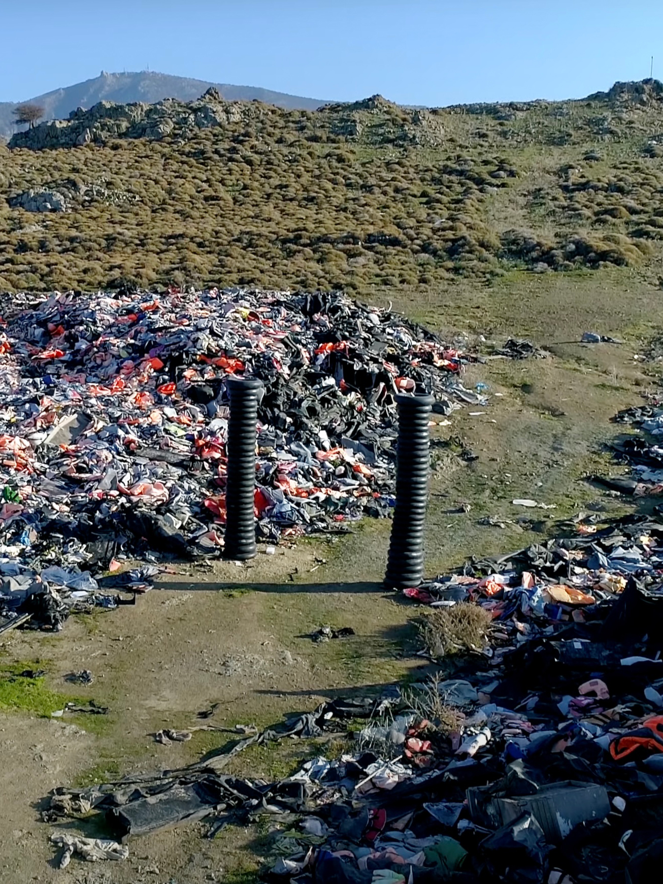 Seguendo il filone The Drama, nel gennaio del 2020, assieme all’artista Andrea Villa, Magaldi si è recato sull’isola di Lesbo, che all’epoca ospitava il campo profughi più grande d’Europa, quello di Mori, e che viveva una situazione di grande sofferenza (stazionavano lì ventiduemila migranti per una capienza prevista per tremila persone), per realizzare un’installazione dal forte impatto emotivo. Il progetto si chiamava Europe/YourHope (un’altra omofonia) ed è stato allestito nel sito denominato Lifejacket Graveyard (“cimitero dei salvagente”, in italiano), una sorta di discarica dove la nettezza urbana dell’isola portava tutti i resti di vestiti, scarpe, gommoni sgonfi, e ciambelle salvagente improvvisati, abbandonati sulla terraferma dai migranti, accumulandoli in montagne di rifiuti alte diversi metri. Qui i due artisti hanno realizzato due colonne costituite dalle camere d’aria del salvagente, che rappresentavano simbolicamente le colonne d’Ercole, e una sonorizzazione della durata di 48h, riprodotta da un monitor che trasmetteva un discorso del premier greco M?tsotak?s, che parlava di diritti e di uguaglianza, e che si trasformavano in una versione dark dell’Inno alla gioia di Beethoven. “L’installazione mirava a far riflettere sulle sofferenze e sui soprusi subiti dai migranti, invitando l’opinione pubblica europea a superare le ‘colonne d’Ercole’ della diffidenza verso l’altro per far sì che l’Europa diventasse una vera terra di speranza per i migranti”.