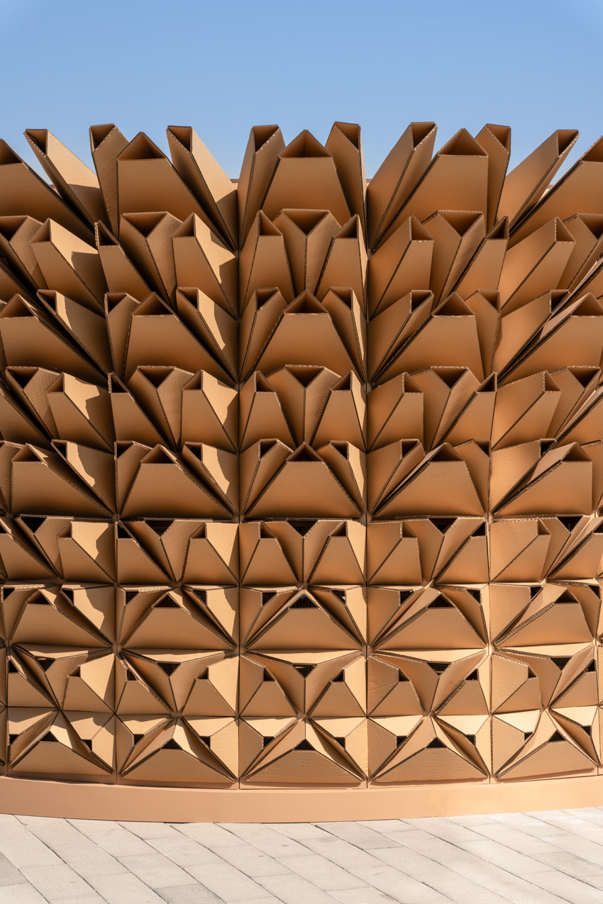 Scegliendo il cartone, un materiale fondamentalmente analogico e planare, abbiamo deliberatamente creato una tensione tra complessità digitale e semplicità dei materiali. Il processo di progettazione parametrica ha spinto contro i vincoli intrinseci del materiale, creando un’interessante dialettica tra possibilità computazionale e limitazione fisica. Questa tensione si è infine risolta in ciò a cui aspiriamo in DEOND “artigianato digitale definitivo”, dove il lavoro manuale umano, guidato da framework computazionali, trasforma materiali di base in forme complesse ispirate alla natura. Il risultato è stata una sintesi inaspettata di processi digitali e analogici, in cui la forma finale faceva riferimento a strutture naturali, pur mantenendo la propria identità architettonica unica. Questo approccio esemplifica quella che ritengo sia una direzione cruciale nel design contemporaneo: l’integrazione ponderata di metodi computazionali avanzati con l’artigianato tradizionale, creando opere che onorano sia l’innovazione tecnologica sia l’intelligenza tattile umana.