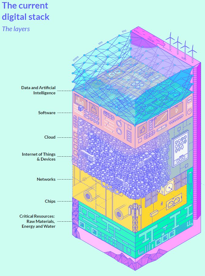 Il legame con il pensiero di Bratton è ulteriormente rafforzato dalla presenza, tra gli autori del report, di Haroon Sheikh, professore di filosofia che ha contribuito a diffondere in Europa il concetto di “Digital Stack”.