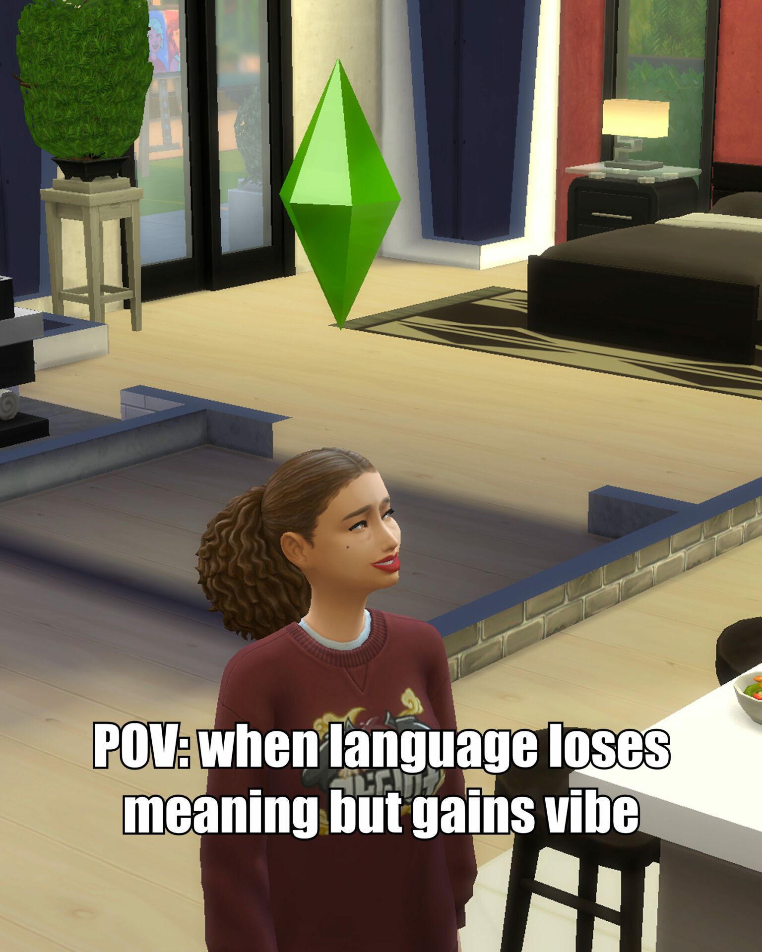 La creazione di una lingua senza significato predefinito ci palesa inevitabilmente una riflessione più profonda sulla natura del linguaggio stesso, e su come la comunicazione non dipenda solo da un codice semantico fisso, ma dalla capacità di dare senso attraverso l’interpretazione. Il Simlish non è solo una forma di linguaggio, ma una pratica performativa che svela le possibilità di un mondo in cui la comunicazione si origina dall’interazione, dall’espressione e dalla connessione emotiva tra i soggetti, piuttosto che dal significato espresso direttamente da un sistema simbolico convenzionale. Il linguaggio dei sims è una sorta di linguaggio “emergente”, che si costruisce in tempo reale tra avatar e giocatori, dando vita a una narrazione condivisa e dinamica.