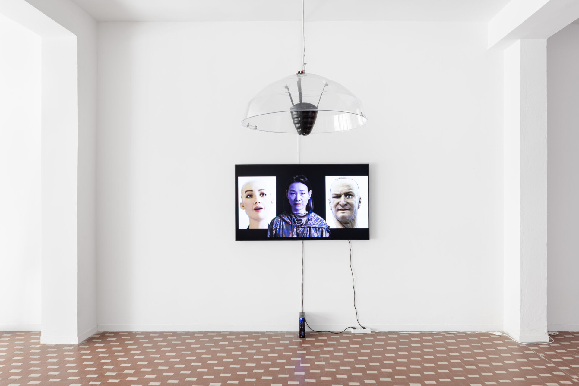 Come sottolinea Quaranta, nel corso dell’esposizione “l’ambiente rimane in qualche modo sullo sfondo, ma il pensiero ecologico fa capolino in quasi tutti i lavori, in forma più o meno trasparente, perché la simbiosi non avviene nel vuoto“. Il ripensamento del legame dell’uomo con la tecnologia avviene immancabilmente sia a livello identitario, quindi osservando la modificazione dell’uomo, che a livello ambientale, ovvero indagando le conseguenze e i possibili scenari ecologici a cui l’uomo, a causa della propria influenza sull’ecosistema, dovrà adattarsi (probabilmente, grazie all’ausilio sempre più vitale della tecnologia). Da questi scenari post-umani e, a tratti, post-apocalittici, nascono i “mostri” a metà tra il biologico e il virtuale di Sahej Rahal. È il caso di Druj, un’entità sintetica generativa i cui movimenti sono condizionati dal suono ambientale: una metafora efficace della natura essenzialmente relazionale dell’essere, cha cambia in base alle interazioni con gli altri agenti e con l’ambiente. E infatti, come insegna la teoria quantistica di stampo femminista ed ecologista della fisica Karen Barad, ogni individuo dotato di agency è infatti “co-costituito” reciprocamente (ovvero “prende forma da” e “dà forma a” ciò che lo circonda).