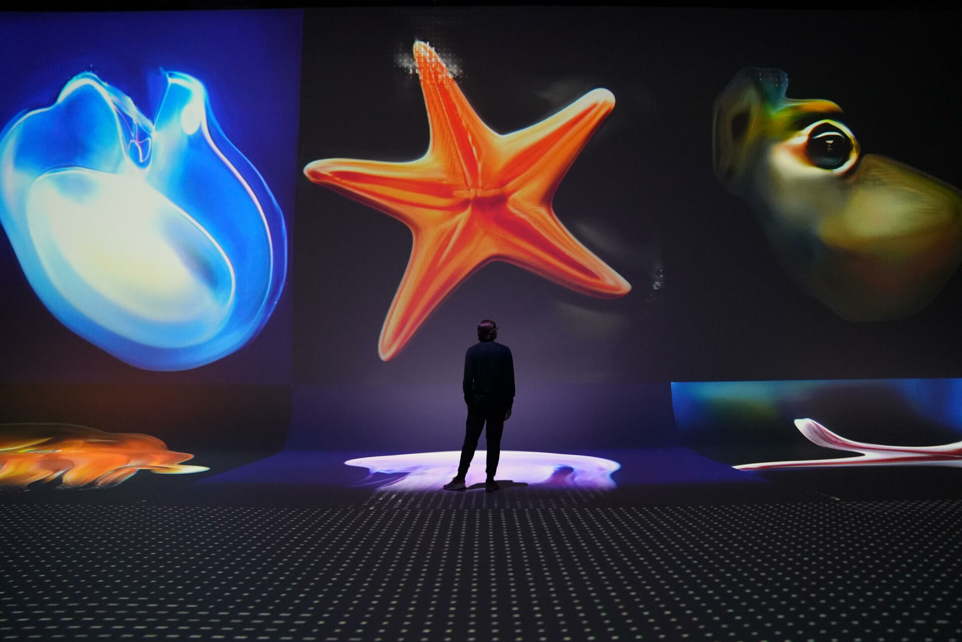 Allestita presso la Fondazione Modena Arti Visive (FMAV) a Palazzo Santa Margherita fino al 12 gennaio 2025, Umwelt – a cura di Marco Mancuso – esplora la questione a partire da una premessa chiave: il superamento della dicotomia tra naturale e artificiale, umano e non-umano. La sfida per il futuro, in breve, non è semplicemente interagire con le forme di intelligenza non-umane, ma creare un dialogo che ridefinisca la relazione tra l’essere umano e il suo contesto ambientale nel senso più ampio, accogliendo un’intelligenza che si mostra non più esclusivamente nella mente umana, ma anche nelle dinamiche tecnologiche e biologiche che strutturano il mondo.